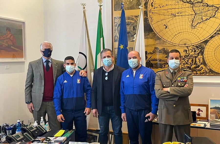 Neo pesista italiano Reyes al Coni per un saluto ufficiale