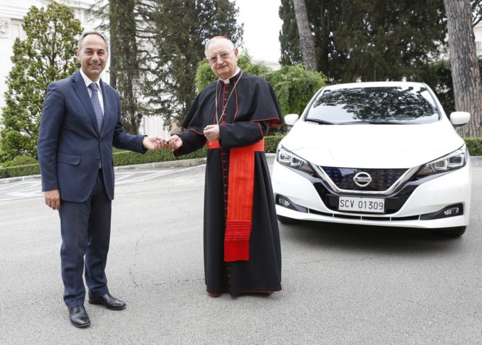 Nissan, in occasione della Giornata Mondiale dell’Ambiente, ha consegnato una vettura 100% elettrica LEAF alla Città del Vaticano, come simbolo dell’impegno comune verso la decarbonizzazione. Nissan LEAF, la prima auto 100% elettrica al mondo per il mercato di massa, è stata ricevuta dal Cardinale Giuseppe Bertello, Presidente del Governatorato dello Stato della Città del Vaticano e Presidente della Pontificia Commissione per lo Stato della Città del Vaticano. La donazione segue il lancio della “Piattaforma di Iniziative Laudato sì”, un percorso di sette anni volto a rendere le istituzioni cattoliche ecosostenibili. La piattaforma prende il nome dalla storica Enciclica del Papa sull’ambiente del 2015. Nel consegnare la LEAF, in occasione di una speciale cerimonia in Vaticano, Marco Toro, Presidente e Amministratore Delegato di Nissan Italia, ha dichiarato: “Sono onorato, a nome di Nissan, di affiancare la Santa Sede nel percorso verso la decarbonizzazione delle operazioni, obiettivo comune che per Nissan si esplicita nel raggiungere il 75% delle vendite con vetture elettrificate in Europa al 2023 e offrire una gamma completamente elettrificata al 2030.- Ha continuato Marco Toro – Nissan LEAF è la prima auto 100% elettrica al mondo per il mercato di massa e le 530.000 vetture su strada hanno evitato oltre 2,8 milioni di tonnellate di CO2 al mondo”.