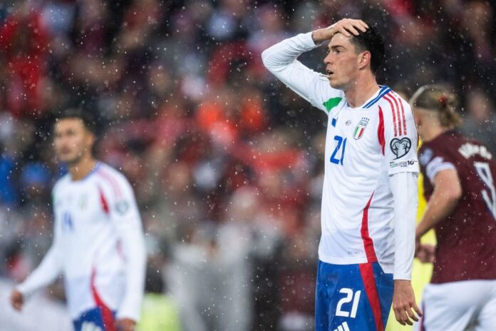 OSLO (NORVEGIA) (ITALPRESS) – L’Italia sprofonda sotto il diluvio di Oslo e vede già ridursi sensibilmente le speranze di qualificazione diretta ai prossimi Mondiali dopo una sola partita giocata. Il netto e meritato 3-0 in favore della Norvegia matura già nel primo tempo, grazie alle reti di Sorloth, Nusa e Haaland.