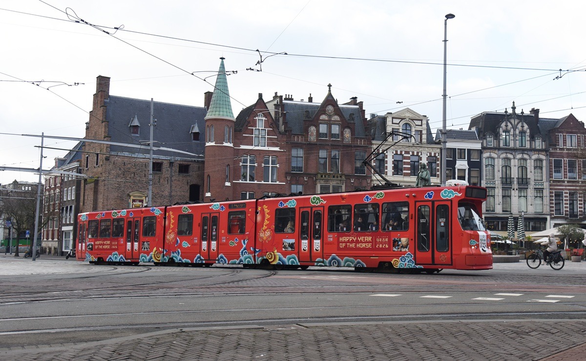 L’AIA (PAESI BASSI) (XINHUA/ITALPRESS) – Un tram decorato per celebrare l’imminente Capodanno cinese è stato fotografato all’Aia, nei Paesi Bassi, il 13 febbraio 2026. Il tram ha fatto il suo debutto sulla linea urbana più trafficata dell’Aia, portando lo spirito festivo del Capodanno cinese ai residenti locali.