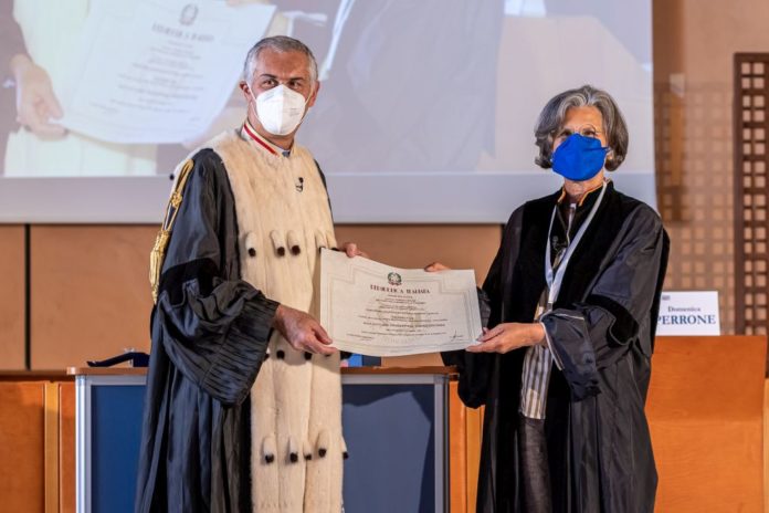 PALERMO (ITALPRESS) – L’Università degli Studi di Palermo ha conferito la laurea honoris causa in Italianistica a Giuseppina Torregrossa, apprezzata e originale scrittrice palermitana. Lo ha fatto nella splendida cornice di Palazzo Steri, dove si è svolta la cerimonia istituzionale, la prima in presenza negli ultimi mesi. Al termine del lungo iter, iniziato con la proposta di Unipa al ministero, che ne ha autorizzato il conferimento, con la sua lectio magistralis ‘Il mio cunto liberò Giuseppina Torregrossa è entrata a tutti gli effetti tra le laureate dell’Ateneo del capoluogo siciliano, per “essersi sempre impegnata in azioni di rilevante importanza sociale, compiendo un percorso culturale e umano, a partire dal nesso tra letteratura e medicina, nella convinzione che la letteratura è militanza e ha la forza di essere grimaldello, elaborando soluzioni stilistiche originali”. E’ la terza donna a ricevere il conferimento ad honorem durante il mandato del Rettore Fabrizio Micari su 17 complessivi e si tratta della seconda laurea per Giuseppina Torregrossa, già dottoressa in Medicina e Chirurgia e specializzata in Ginecologia. Il titolo in Italianistica dà merito al valore della sua seconda carriera, quella letteraria, che ha preso il via soltanto nel 2007 con il libro ‘L’assaggiatricè e poi con una serie di opere di successo legate al territorio siciliano.