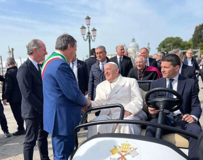 VENEZIA (ITALPRESS) – “Addio Papa Francesco! Un immenso dolore che si unisce al ricordo, ancora vivo, della visita del Pontefice a Venezia neanche un anno fa. Le sue parole, i suoi insegnamenti e il forte messaggio di concordia e fratellanza sono stati fonte d’ispirazione per tutti noi e hanno riempito di fede e amore la nostra Città. È stato una figura importante che ha segnato la storia del nostro tempo e della Chiesa. Non dimenticherò mai la sua forza, la sua umanità e la sua instancabile dedizione alla pace e alla libertà. Una scomparsa avvenuta nel giorno in cui l’Angelo annuncia la Risurrezione di Cristo. Un grande Uomo che voglio ricordare con affetto e gratitudine. Il suo ricordo vivrà sempre con noi e ci guiderà verso la costruzione di un futuro migliore di fede, speranza e carità. Come disposto dalla Prefettura di Venezia bandiere a mezz’asta nelle sedi del Comune, a Venezia e a Mestre, in segno di lutto per la scomparsa di Papa Francesco”. E’ il messaggio di cordoglio del sindaco di Venezia e della Città metropolitana Luigi Brugnaro per la scomparsa di Papa Francesco.