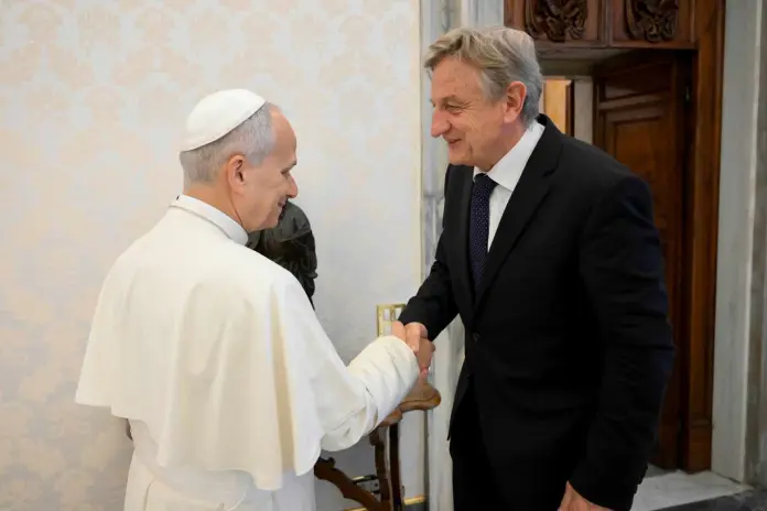 ROMA (ITALPRESS) – Papa Leone XIV ha ricevuto questa mattina in udienza privata il presidente della Fondazione Meeting per l’amicizia fra i popoli, Bernhard Scholz, che gli ha rinnovato l’invito a partecipare alla prossima edizione del Meeting di Rimini. “Sono molto grato di aver potuto illustrare al Santo Padre in un clima molto cordiale i contenuti del Meeting e i motivi del nostro impegno”, ha detto Scholz. La prossima edizione del Meeting si svolgerà dal 21 al 26 agosto 2026 e avrà come titolo l’ultimo versetto della Divina Comedia “L’amor che move il sole e l’altre stelle”.