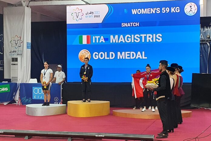 Magistris nei pesi, categoria 59 kg, ai Giochi del Mediterraneo in corso a Orano, in Algeria. L’azzurra ha vinto la prova di strappo alzando 95 kg, meglio della grega Georgopoulou (94) e della turca Ozkan (92). L’azzurra ha poi vinto anche la medaglia d’argento nella prova di slancio alzando 114 kg, battuta solo dalla tunisina Belkhir (115). Bronzo per l’egiziana Ibrahim (113). “E’ una grande soddisfazione che arriva al termine di una gara bella e combattuta fino all’ultimo kg – ha dichiarato Lucrezia Magistris commentando le due medaglie vinte – C’è un po di rimorso per l’alzata finale di slancio, avrei voluto prendere due ori ma la gara alla fine è andata bene, ci sono stati pochi errori e quindi sono contenta. I prossimi obiettivi? Voglio migliorare le mie prestazioni facendo sempre meglio, vedremo come andranno le prossime gare. E poi Parigi 2024, traguardo finale di tutto questo percorso”. Infine una battuta sull’esperienza ai Giochi del Mediterraneo e al villaggio atleti: “E’ diverso dal solito, siamo insieme a tutti gli atleti italiani – ha osservato la pesista azzurra – E’ un’esperienza emozionante e nuova per me”.