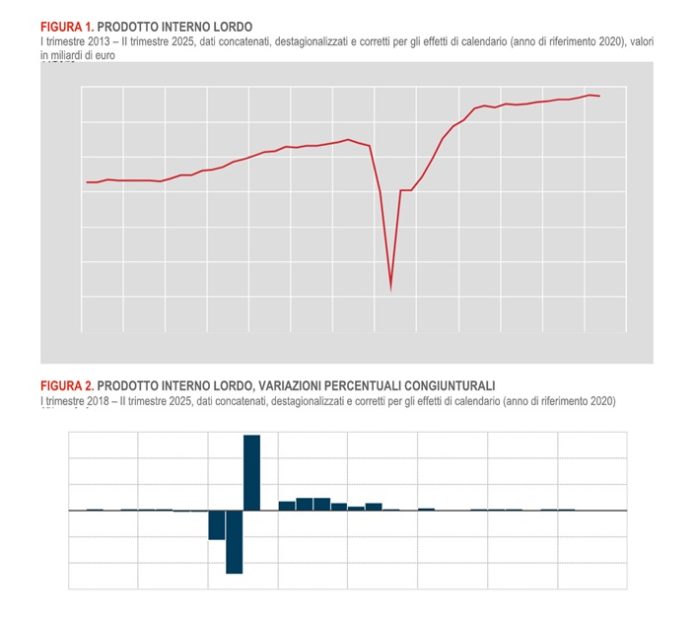 ROMA (ITALPRESS) – Nel secondo trimestre del 2025 il prodotto interno lordo (Pil), espresso in valori concatenati con anno di riferimento 2020, corretto per gli effetti di calendario e destagionalizzato, è diminuito dello 0,1% rispetto al trimestre precedente, mentre è cresciuto dello 0,4% nei confronti del secondo trimestre del 2024. Lo rileva l’Istat. La stima odierna conferma la variazione congiunturale e tendenziale del Pil comunicata il 30 luglio 2025 in via preliminare. La crescita acquisita per il 2025 risulta pari allo 0,5%, confermando quanto diffuso lo scorso luglio. Rispetto al trimestre precedente, con riferimento ai principali aggregati della domanda interna, si registra una stabilità dei consumi finali nazionali e una crescita dell’1% degli investimenti fissi lordi.