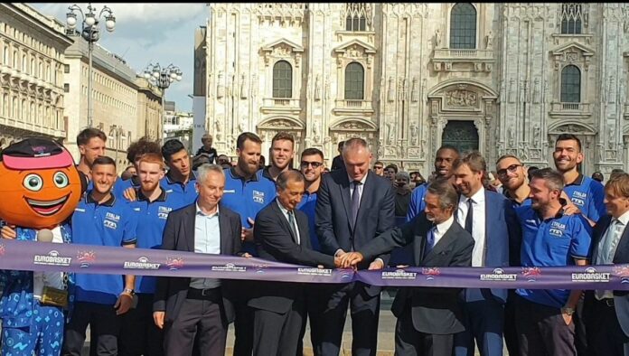 MILANO (ITALPRESS) – “La prima cosa che ho cercato di fare fin dal primo giorno a Pinzolo, dove abbiamo iniziato il raduno con questi ragazzi splendidi che ho la fortuna di allenare, è far capire loro che devono vivere un sogno. Sono ragazzi che hanno già ottenuto successo ma hanno avuto poco ‘culò, non sono riusciti a raccogliere quello che hanno seminato. Quello che sto cercando di far capire loro è che devono vivere un sogno, non sarà facile, un Europeo è molto competitivo, non sarà semplice ma voglio che questi ragazzi vivano un sogno”. Lo ha detto il ct azzurro Gianmarco Pozzecco all’inaugurazione, in piazza Duomo a Milano, della ‘Fan zonè allestita per gli Europei di basket 2022. Si tratta di un’arena da circa 1.300 metri quadrati che ospiterà numerosi eventi per tutti gli appassionati della pallacanestro nel quadro dell’avvio del torneo. All’Europeo “ci sono tantissime nazioni che hanno roster che sono molto competitivi, ma noi non ci preoccupiamo di tutto questo, affronteremo l’Europeo partita per partita – ha continuato Pozzecco – Chiederò ai ragazzi di vivere la pallacanestro con grande passione. Se i bambini che li guarderanno lo percepiranno, si innamoreranno così di questo sport”.