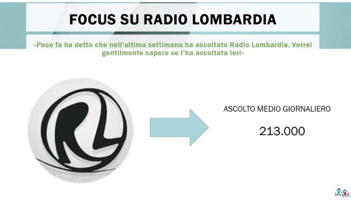 MILANO (ITALPRESS) – Radio Lombardia è tra le radio “locali” più conosciute della regione, lo si evince dal sondaggio Winpoll secondo cui sono 3.784.000 le persone che conoscono la storica emittente milanese. Sempre stando ai dati del sondaggio sono 213.000 gli ascoltatori che si sintonizzano ogni giorno sull’emittente utilizzando i diversi device. In questo senso lo strumento principale rimane la radio (dab ed fm) 71%, Smart Tv 15%, Social (Facebook, Instagram, Twitter), altri aggregatori 8%, Smart Speaker 7% e sito 5%. “Dall’indagine risulta che Radio Lombardia sta diventando, con grande nostra soddisfazione, una realtà anche del nuovo mondo digitale – afferma l’editore dell’emittente Tiziano Mariani -. La radio nata sulle onde fm continua la sua evoluzione nei tempi contemporanei, essendo sempre più uno strumento della vita quotidiana per chi vive, lavora e si sposta nella nostra Regione che di questo strumento è stata avanguardia avendo visto la nascita della radiofonia italiana”. Le persone che ascoltano Radio Lombardia almeno una volta nell’arco della settimana sono 718mila. Per quanto riguarda le fasce d’età l’emittente si rivolge a un pubblico young adult: infatti gli ascoltatori tra i 30 e i 65 anni rappresentano il 59% del totale (tra i 45-65 anni 33%, 30-40 anni 26%) mentre gli over 65 sono il 23% e i più giovani 14-29 rappresentano il 18%. Radio Lombardia caratterizza il suo palinsesto grazie all’informazione regionale e ai programmmi di approfondimento in cui quotidianamente vengono ospitati artisti, politici, attori, scrittori e giornalisti.(ITALPRESS).