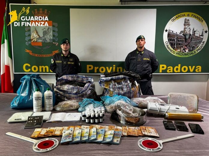 Entrati nell’abitazione i finanzieri del Nucleo di Polizia Economico-Finanziaria si sono trovati di fronte ad una vera e propria raffineria di droga, rinvenendo in due sacchi complessivi 60 kg di eroina, strumenti e prodotti destinati alla preparazione e confezionamento dello stupefacente e 25.000,00 euro. Le successive procedure di identificazione hanno consentito di accertare le esatte generalità del soggetto, un cittadino albanese. Il soggetto è stato tradotto presso la Casa Circondariale di Padova.