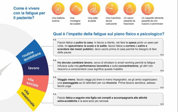 La ricerca evidenzia, inoltre, come solo la metà dei pazienti riferisca la fatigue al proprio medico, per timore di non essere creduti o perchè la ritengono una condizione inevitabile dell’EPN.