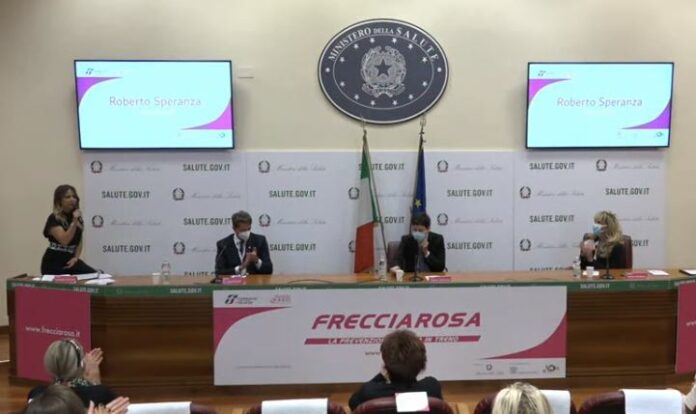 ROMA (ITALPRESS) – Il Frecciarosa torna a correre sui binari: parte il primo ottobre la campagna promossa da Fs e dall’associazione Incontra Donna Onlus, con il patrocinio del ministero della Salute, con il sostegno dell’Associazione Italiana di Oncologia Medica (Aiom) e di Farmindustria, per la prevenzione dei tumori femminili, principalmente quelli al seno. “Riprendere gli screening è una priorità assoluta per il Governo, dopo mesi difficili siamo a un passaggio cruciale per il nostro Sservizio Sanitario Nazionale. Oggi si apre una finestra di opportunità, da questa crisi dobbiamo uscire con un Ssn più forte. Noi stiamo già investendo molto di più, io mi impegno per far crescere nei prossimi anni il fondo nazionale sanitario”, ha detto il ministro della Salute, Roberto Speranza, nel corso della presentazione della XI edizione del Frecciarosa.