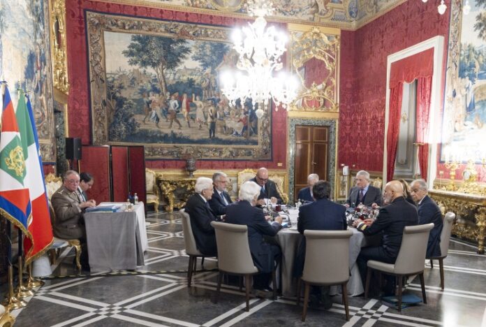 ROMA (ITALPRESS) – Si è riunito oggi, al Palazzo del Quirinale, il Consiglio supremo di difesa, presieduto dal Presidente della Repubblica, Sergio Mattarella. Alla riunione hanno partecipato: il Presidente del Consiglio dei ministri, Giorgia Meloni; il Ministro degli affari esteri e della cooperazione internazionale, Antonio Tajani; il Ministro dell’interno, Matteo Piantedosi; il Ministro della difesa, Guido Crosetto; il Ministro dell’economia e delle finanze, Giancarlo Giorgetti; il Capo di Stato maggiore della difesa, Giuseppe Cavo Dragone.