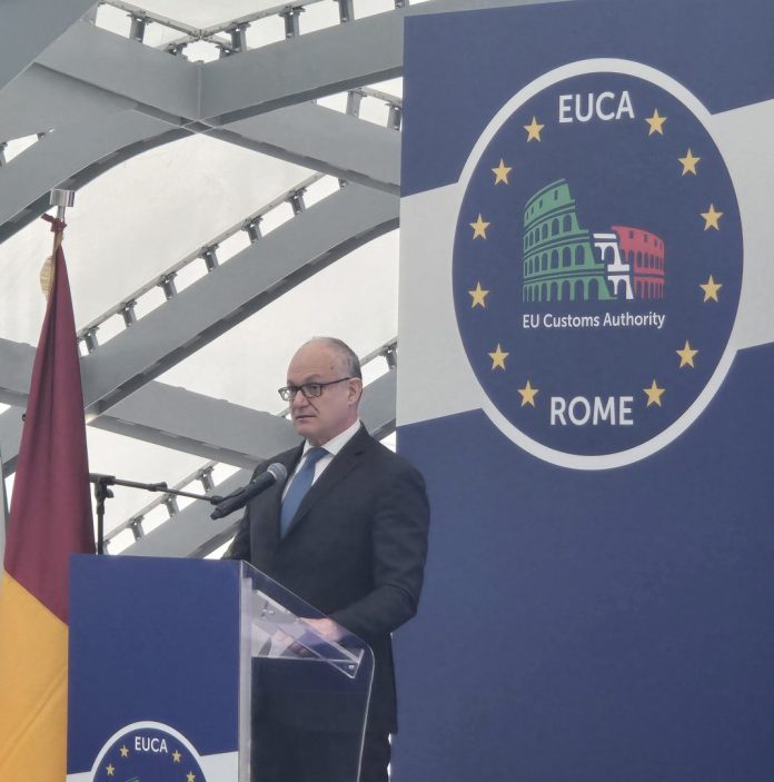 ROMA (ITALPRESS) – Al Roma Convention Center “La Nuvola” si è tenuta la Cerimonia di presentazione della candidatura di Roma Capitale ad ospitare la sede della nuova Autorità doganale dell’Unione europea (European Union Customs Authority). All’evento sono intervenuti il ministro dell’Economia e delle finanze, Giancarlo Giorgetti, il sindaco di Roma, Roberto Gualtieri, il Comandante generale della Guardia di Finanza, Andrea De Gennaro, e il Direttore dell’Agenzia delle dogane e dei monopoli, Roberto Alesse.