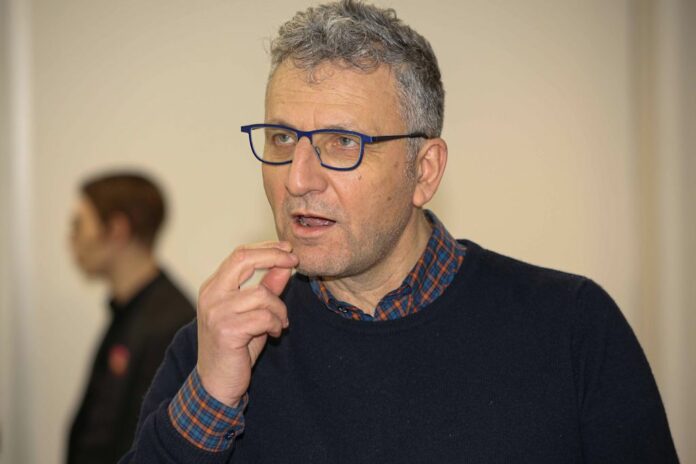 ROMA - E’ arrivato il momento di lanciare la sfida di Liberare Roma con un percorso a tappe e condiviso. Amedeo Ciaccheri attuale Presidente dell' ottavo Municipio presenta alla stampa la nuova Lista Civica che si presenterà alle prossime elezioni Comunali per battere le destre ed il movimento 5 stelle. In foto Massimiliano Smeriglio eurodeputato indipendente nelle liste del Partito Democratico. (ROMA - 2020-01-31, Claudio-Sisto) p.s. la foto e' utilizzabile nel rispetto del contesto in cui e' stata scattata, e senza intento diffamatorio del decoro delle persone rappresentate