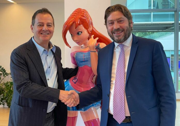 SAN MARINO (ITALPRESS) – Il Segretario di Stato per il Turismo Federico Pedini Amati ha visitato la sede di Loreto di Rainbow, gruppo imprenditoriale leader nel settore dell’intrattenimento e dell’animazione, tra le principali realtà al mondo per la creazione e la produzione di prodotti televisivi e cinematografici, sviluppo di programmi di licensing, progetti editoriali e produzione di merchandising nota per marchi quali Winx e “44 gatti”. A Rainbow fa capo la casa di produzione cinematografica Colorado. Ad accogliere il Segretario di Stato Federico Pedini Amati il Presidente e CEO di Rainbow Iginio Straffi, visionario fondatore dell’azienda. Presente alla visita anche l’Assessore per il Turismo e la Cultura del Comune di Loreto Francesca Carli.