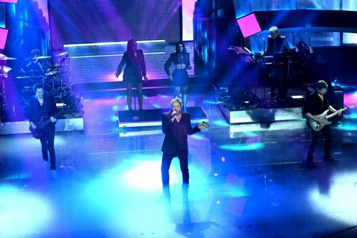 Noemi, Olly, Coma_Cose, Modà, Tony Effe, Irama, Francesco Gabbani, Gaia. A 40 anni dal loro debutto all’Ariston nel 1985, i Duran Duran tornano sul palco del Festival e infiammano l’Ariston. Assente Andy Taylor, che sta affrontando un cancro alla prostata, la band propone ‘Invisible’, ‘Notorious’ e ‘Ordinary world’, incitando il pubblico a cantare con loro. Proseguono con ‘Girls on film’, prima di essere raggiunti da Victoria De Angelis, bassista dei Måneskin, band attualmente in pausa, che li accompagna in ‘Psycho Killer’. Carlo Conti saluta Simon Le Bon, che ricorda la disavventura di 40 anni fa, quando si ruppe un piede il giorno prima di esibirsi all’Ariston. Intanto, in platea, Katia Follesa, vestita da sposa, solleva un cartello con scritto “Sposerò Simon Le Bon”, tormentone dei tempi in cui Simon Le Bon era l’idolo di milioni di ragazzine. Dopo ‘Wild boys’, richiesta dal conduttore, il leader dei Duran Duran riceve il Premio del Comune di Sanremo e concede un bacio a stampo alla comica, mentre il pubblico intona “Bacio, bacio”. “Non hai capito che cos’è successo: mi sono quasi limonata Simon Le Bon”, esclama Follesa prima di lanciare il bouquet tra il pubblico. Iva Zanicchi ritira il premio alla carriera e canta alcuni dei suoi successi. Settembre è il vincitore delle Nuove Proposte con Vertebre.