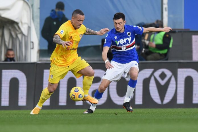 Il Cagliari si fa rimontare dalla Sampdoria, da 1-0 a 1-2, ma Nainggolan salva i sardi a un secondo dal termine: finisce 2-2. Gli ospiti fanno la partita, si rendono pericolosi, segnano con Joao Pedro e si difendono a dovere. Poi l’uno-due con la prima rete in Italia di Bereszynski e la perla assoluta di Manolo Gabbiadini. Allo scadere ci pensa l’ex centrocampista dell’Inter a regalare il pareggio a Semplici. Gli ospiti partono con un piglio decisamente diverso, affidandosi alla qualità dei propri centrocampisti. Poco appariscenti invece i liguri in entrambi le fasi, soprattutto in quella difensiva dove lasciano spazi e corridoi invitanti agli avversari. All’11’ ecco che la contesa si sblocca: sponda di Pavoletti all’indirizzo di Joao Pedro che sulla ribattuta batte Audero per lo 0-1. Improvvisamente, al 14′, Rugani commette fallo da ultimo uomo su Keita. Inizialmente l’arbitro Giacomelli assegna il penalty, ribaltando poi la sua decisione per una posizione di fuorigioco precedente. Traballa la Sampdoria, facendo storcere il naso a un Ranieri tutt’altro che soddisfatto. Nel finale della prima frazione i blucerchiati rischiano il pasticcio, regalando palla a Joao Pedro in area di rigore: quest’ultimo però non ne approfitta.
