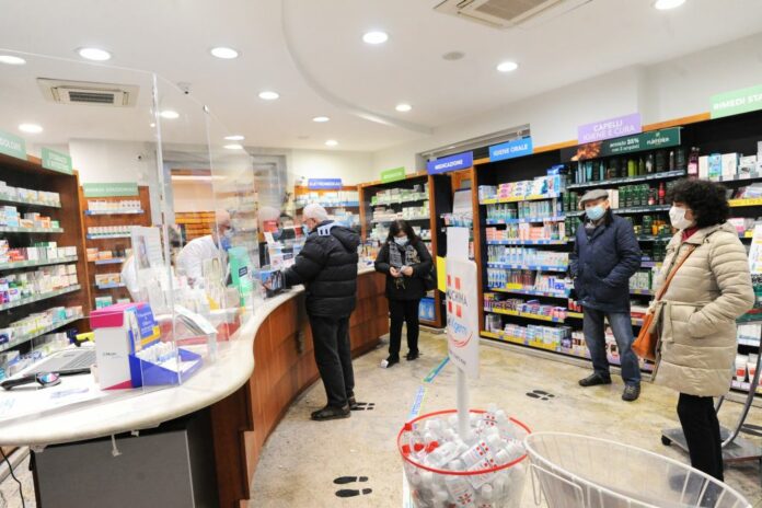 FARMACIA CLIENTI CODA ATTESA POSTAZIONE PRENOTAZIONE VACCINO COVID-19