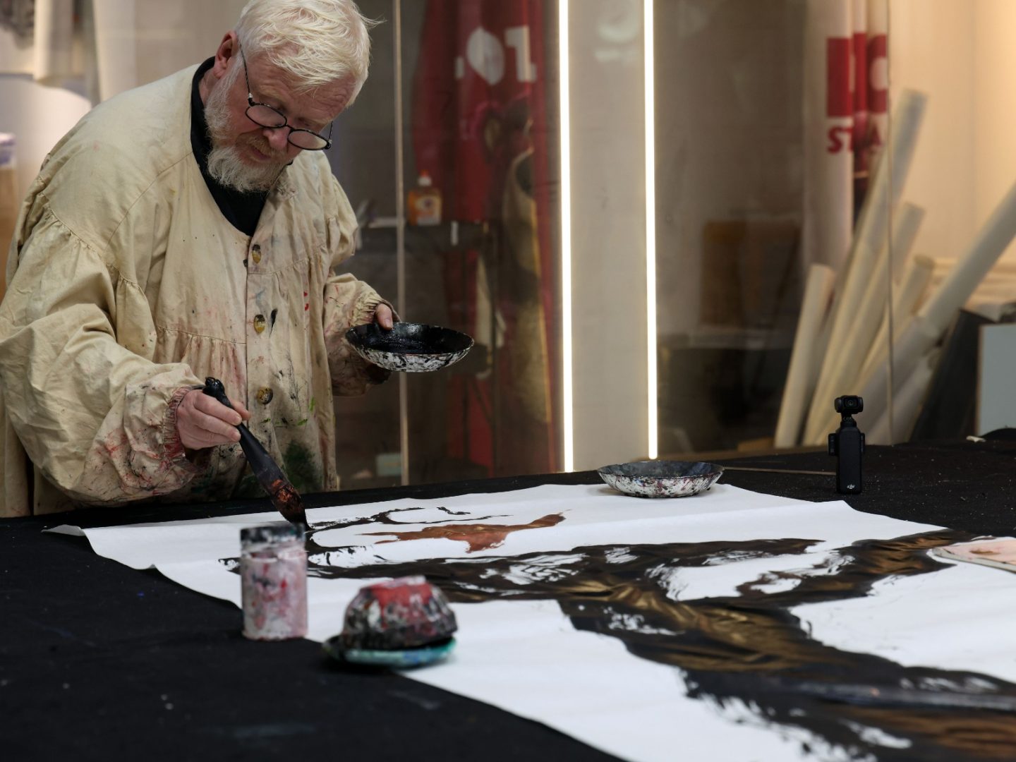 SHANGHAI (CINA) (XINHUA/ITALPRESS) – Benoît Vermander dipinge in uno studio a Shanghai, nella Cina orientale, il 22 aprile 2026. Benoît Vermander, studioso francese nato nel 1960, non è solo professore e supervisore di dottorato presso la School of Philosophy della Fudan University, ma anche pittore, poeta e ambasciatore culturale, la cui vita è diventata un dialogo tra Oriente e Occidente. Il suo percorso con la cultura cinese è iniziato nel 1987, durante la sua prima visita in Cina. Quella scintilla iniziale di apprezzamento è cresciuta fino a diventare un impegno di tutta la vita. Dagli anni ’90, ha studiato sistematicamente la lingua cinese, approfondito l’antica filosofia cinese, praticato la calligrafia e svolto ricerche sulla pittura contemporanea cinese a inchiostro. Nel 2009 è entrato formalmente alla Fudan University come membro della facoltà. Sia nel lavoro accademico sia in quello artistico, Vermander crea costantemente ponti tra le tradizioni orientali e occidentali. I suoi dipinti a olio incorporano con audacia la tecnica della pittura a inchiostro del “vuoto lasciato”, mentre i suoi dipinti a inchiostro rompono con la convenzione intrecciando temi della filosofia occidentale. Attraverso il suo pennello, favorisce una convergenza silenziosa ma potente tra civiltà. Nell’aprile 2026 è stata pubblicata la sua prima raccolta di poesie in cinese. Le opere di Vermander sono state esposte in tutto il mondo. Attualmente, la Fudan University ospita una mostra retrospettiva che presenta quasi tre decenni della sua produzione creativa. Tutto è iniziato con un singolo pennello cinese. Per quasi quarant’anni, Benoît Vermander ha composto una sincera storia di amicizia tra uno studioso francese e il ricco mondo della cultura cinese.