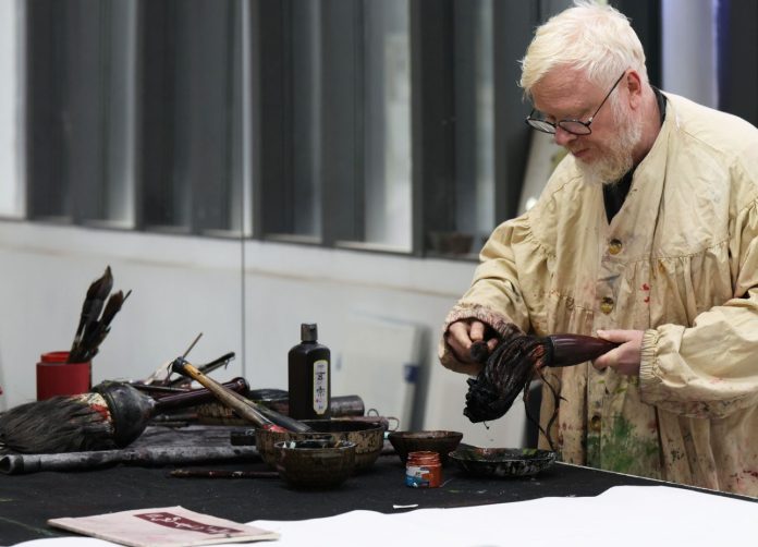SHANGHAI (CINA) (XINHUA/ITALPRESS) – Benoît Vermander prepara i pennelli per dipingere in uno studio a Shanghai, nella Cina orientale, il 22 aprile 2026. Benoît Vermander, studioso francese nato nel 1960, non è solo professore e supervisore di dottorato presso la School of Philosophy della Fudan University, ma anche pittore, poeta e ambasciatore culturale, la cui vita è diventata un dialogo tra Oriente e Occidente. Il suo percorso con la cultura cinese è iniziato nel 1987, durante la sua prima visita in Cina. Quella scintilla iniziale di apprezzamento è cresciuta fino a diventare un impegno di tutta la vita. Dagli anni ’90, ha studiato sistematicamente la lingua cinese, approfondito l’antica filosofia cinese, praticato la calligrafia e svolto ricerche sulla pittura contemporanea cinese a inchiostro. Nel 2009 è entrato formalmente alla Fudan University come membro della facoltà. Sia nel lavoro accademico sia in quello artistico, Vermander crea costantemente ponti tra le tradizioni orientali e occidentali. I suoi dipinti a olio incorporano con audacia la tecnica della pittura a inchiostro del “vuoto lasciato”, mentre i suoi dipinti a inchiostro rompono con la convenzione intrecciando temi della filosofia occidentale. Attraverso il suo pennello, favorisce una convergenza silenziosa ma potente tra civiltà. Nell’aprile 2026 è stata pubblicata la sua prima raccolta di poesie in cinese. Le opere di Vermander sono state esposte in tutto il mondo. Attualmente, la Fudan University ospita una mostra retrospettiva che presenta quasi tre decenni della sua produzione creativa. Tutto è iniziato con un singolo pennello cinese. Per quasi quarant’anni, Benoît Vermander ha composto una sincera storia di amicizia tra uno studioso francese e il ricco mondo della cultura cinese.