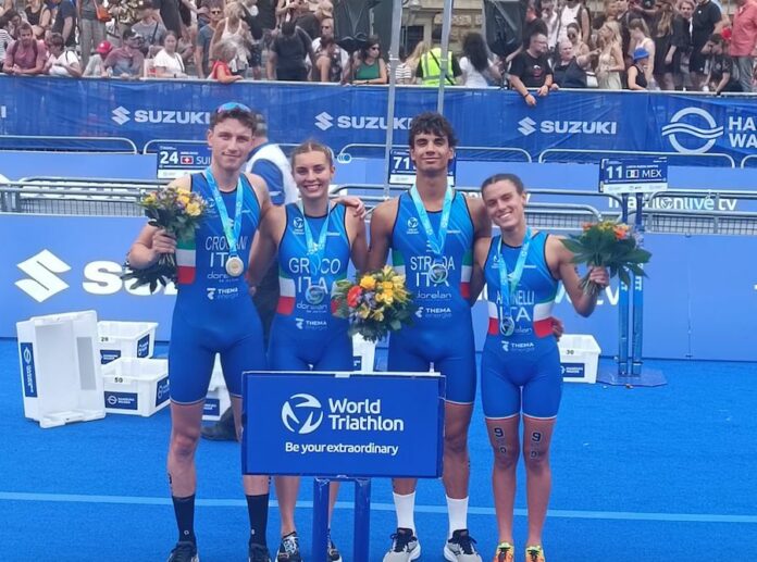 Un risultato storico quello conquistato dal team azzurro formato da Alessio Crociani (G.S. Fiamme Azzurre), Myral Greco (G.S. Fiamme Azzurre), Nicolò Strada (C.S. Carabinieri – Raschiani Triathlon Team) e Costanza Arpinelli (G.S. Fiamme Azzurre – Minerva Roma) che si sono dovuti arrendere dopo un lungo testa a testa durato quattro frazioni solo ai padroni di casa della Germania della squadra Henry Graf, Julia Bröcker, Eric Diener e Tanja Neubert, nuovo team Campione del Mondo Mixed Relay di categoria U23-Junior.
