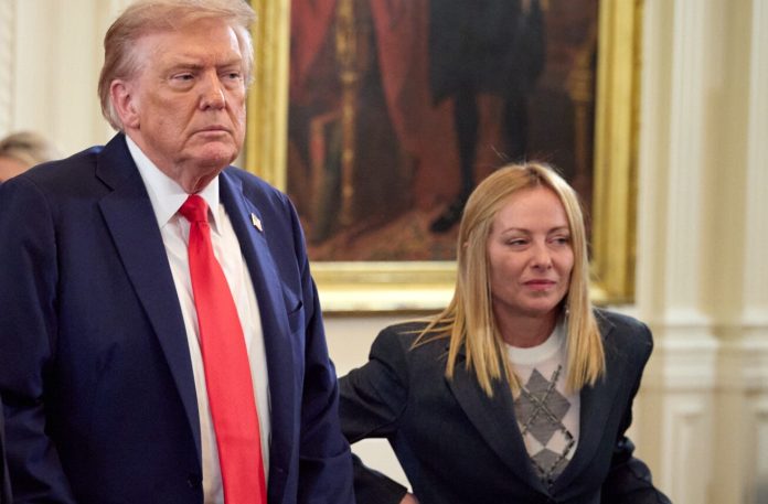 E mentre questo linguaggio prende piede, Trump continua a occupare lo spazio mediatico con una sequenza di provocazioni sempre più personali. Pubblica immagini di sé stesso come Gesù che guarisce i malati, poi le rimuove, poi ne diffonde un’altra in cui è accanto a Cristo che lo sostiene. È una costruzione continua del racconto attorno alla sua figura. Come intuì Oscar Wilde, non importa se se ne parli bene o male, purché se ne parli. E Trump questo meccanismo lo usa da anni, soprattutto nei momenti di maggiore pressione. Ed è qui che entra il secondo scontro, quello con Giorgia Meloni. Fino a una settimana fa era il suo punto di riferimento in Europa. Oggi Trump dice di essersi “sbagliato” su di lei. Non solo perché Meloni ha difeso il Papa, ma soprattutto perché non ha seguito gli Stati Uniti nella guerra in Iran.