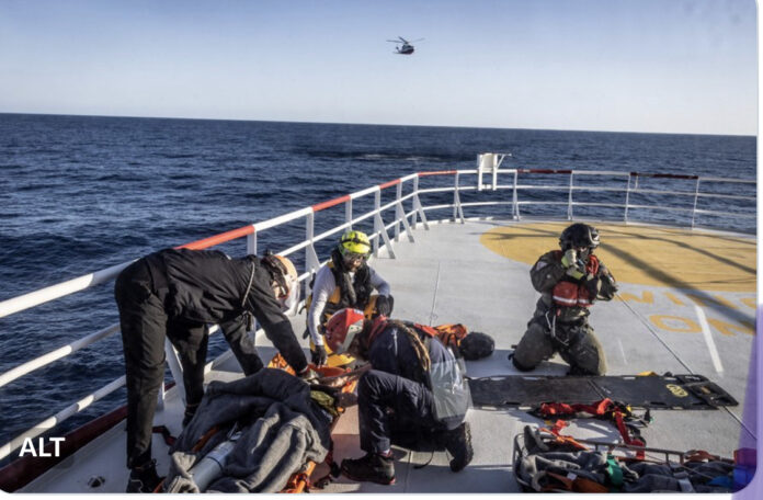 LA VALLETTA (MALTA) (ITALPRESS/MNA) – The OceanViking rescue team operated by the NGO SOS Mediterranee evacuated 25 migrants from a drifting rubber boat spotted via binoculars in the Libyan search and rescue area. A medical mass casualty plan had to be initiated, to care for the survivors found in extreme vulnerable physical and mental health.
