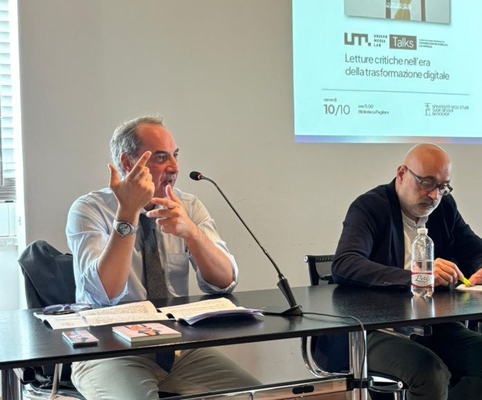 NAPOLI (ITALPRESS) – Il noto esperto di comunicazione e social media strategy Ugo Piazza, autore del volume “Una generazione affacci in giù. Social media e la nuova scomposizione sociale”, ha tenuto oggi un incontro-dibattito presso l’Università degli Studi Suor Orsola Benincasa di Napoli, insieme al professor Iorio. Durante l’incontro, rivolto agli studenti dei corsi di comunicazione, Piazza ha affrontato il tema dell’importanza della consapevolezza del proprio “io” nella società iperconnessa e del principio secondo cui “è impossibile non comunicare”. Ogni gesto, parola o immagine condivisa, ha spiegato, rappresenta una forma di comunicazione capace di generare reazioni — e ciò è ancora più evidente nel mondo digitale.