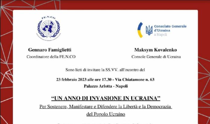 NAPOLI (ITALPRESS) – Ad un anno dall’inizio della guerra in Ucraina, il Console generale della Repubblica di Bulgaria Gennaro Famiglietti, Coordinatore della Federazione Nazionale Diplomatici e Consoli Esteri in Italia, e il Console Generale di Ucraina Maksym Kovalenko, nella sede dell’Istituto di Cultura Meridionale a Napoli, terranno il 23 febbraio una commemorazione per sostenere il Popolo Ucraino. All’evento parteciperanno istituzioni civili, religiose, diplomatiche e militari. Presenzierà il sindaco di Napoli, Gaetano Manfredi. Interverranno il Console Generale degli Usa Tracy Roberts Pounds, l’Ambasciatore Ucraino in Italia Yaroslav Melnyk con un messaggio e il viceministro degli Affari Esteri, Edmondo Cirielli. Verranno conferiti attestati di ringraziamento a coloro che hanno lavorato per la pace, per la difesa e per la cristiana solidarietà. Sarà presentata in anteprima nazionale “la piattaforma ufficiale sulla guerra contro l’Ucraina”, che mira a diffondere informazioni verificate e aggiornate sulla guerra, dando risalto alla dimensione umana del conflitto e documentando i crimini di Guerra della Russia.