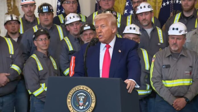 WASHINGTON (STATI UNITI) (ITALPRESS) – Nel corso di un evento nella East Room della Casa Bianca il presidente degli Stati Uniti Donald Trump ha firmato quattro ordini esecutivi con l’obiettivo di rilanciare l’industria carbonifera statunitense, in declino da decenni, soppiantata dal gas naturale più economico e dall’ascesa delle energie rinnovabili.