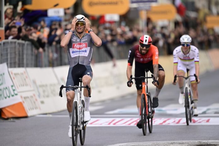 SANREMO (ITALPRESS) – Spettacolo doveva essere, spettacolo è stato. La 116esima edizione della Milano-Sanremo si è chiusa con la vittoria di Mathieu van der Poel e una prova incredibile da parte di Filippo Ganna: non è bastata però la rimonta dell’azzurro per andare ad impensierire l’olandese in grado di battere anche Tadej Pogacar. Il campione del mondo in carica ha provato in tutti i modi a staccare il rivale per poi arrivare in solitaria al traguardo, ma alzare le braccia al cielo su Via Roma – per la seconda volta in carriera dopo il 2023 – è stato il corridore dell’Alpecin-Deceuninck.