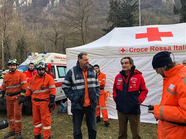 Sopralluogo del presidente della Regione Lombardia, Attilio Fontana, in Valganna, dove è stata allestita la sala operativa che coordina il lavoro di oltre 150 uomini di Protezione Civile, Vigili del Fuoco, Carabinieri forestali e Croce Rossa.