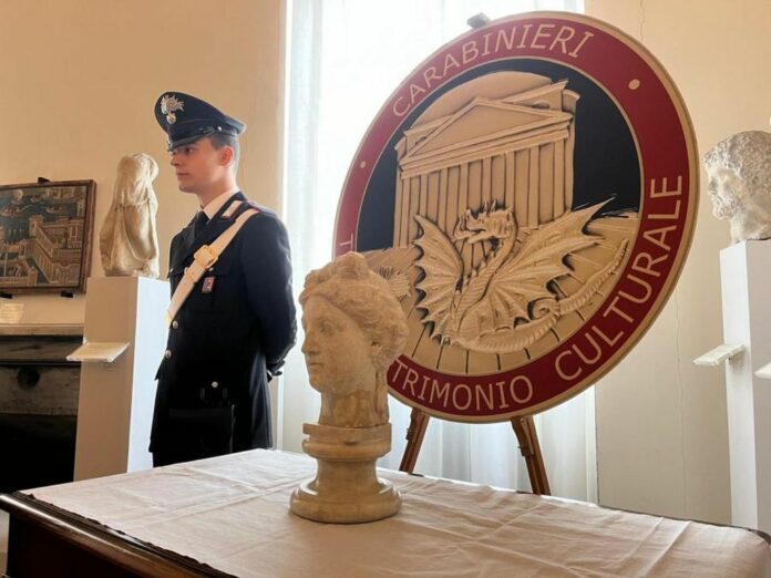 Questa mattina la testa di fattura romana, probabilmente di una bottega del centro Italia, è stata consegnata dal Nucleo specialistico dei carabinieri ai Musei archeologici di Venezia e della Laguna. In conferenza stampa, tenutasi al Museo di piazza San Marco, dove verrà esposta al pubblico, la direttrice dei Musei archeologici Marianna Bressan: “Il suo ritrovamento è una notizia bellissima” ha detto; i rappresentanti del Nucleo Tutela Beni Culturali dei Carabinieri, la Soprintendenza archeologica di Venezia e l’assessore alla Sicurezza del Comune di Venezia Elisabetta Pesce: “Il Comune ringrazia il Comando locale del Nucleo specializzato nel ritrovamento e nella tutela del nostro patrimonio culturale per il lavoro svolto in questo particolare contesto, e per la consegna di un bene tanto importante. Una attività, quella dei carabinieri, spesso invisibile ma dai risultati come vediamo eccezionali; un lavoro e uno speciale comparto apprezzato a livello internazionale, dove non conosce eguali”. Il Nucleo dei Carabinieri a tutela del patrimonio culturale italiano, riconosciuto nel mondo, ha ad oggi una banca dati che conta oltre 7 milioni di beni censiti e anche per questo è un riferimento internazionale.(ITALPRESS).