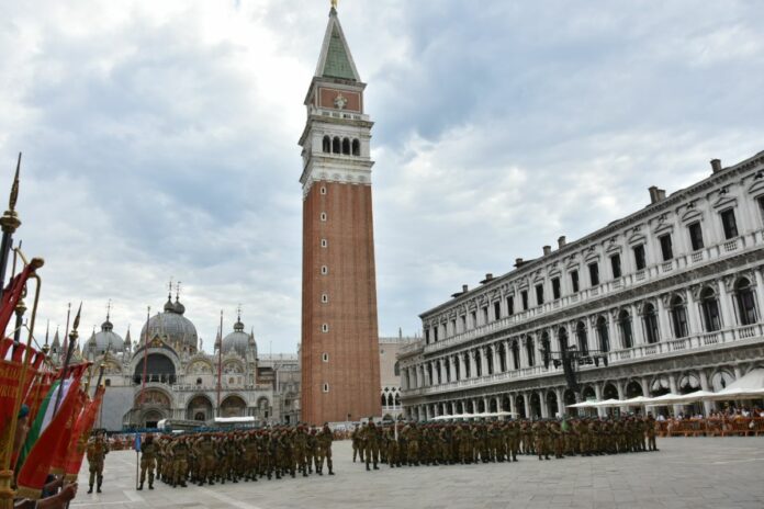 VENEZIA (ITALPRESS) – “Come lo scoglio infrango, come l’onda travolgo”. Il motto dei Lagunari ha riecheggiato in piazza San Marco per i 41 anni dalla costituzione della Specialità. Questa mattina la cerimonia: in piazza le donne e gli uomini del corpo speciale, l’Associazione lagunari, la Fanfara dell’esercito; sul palco autorità militari e civili. Per la città di Venezia la presidente del Consiglio comunale Ermelinda Damiano che ha subito sottolineato il forte legame che unisce la città ai Lagunari: “I vostri colori, i vostri valori, il vostro motto ‘San Marco!’ non sono soltanto un richiamo alla tradizione, ma rappresentano un orgoglio attuale, vivo, che appartiene a tutti i veneziani, dalle isole alla terraferma. Questa cerimonia, aperta alla cittadinanza, rinnova il patto d’affetto tra Venezia e i suoi Lagunari”.