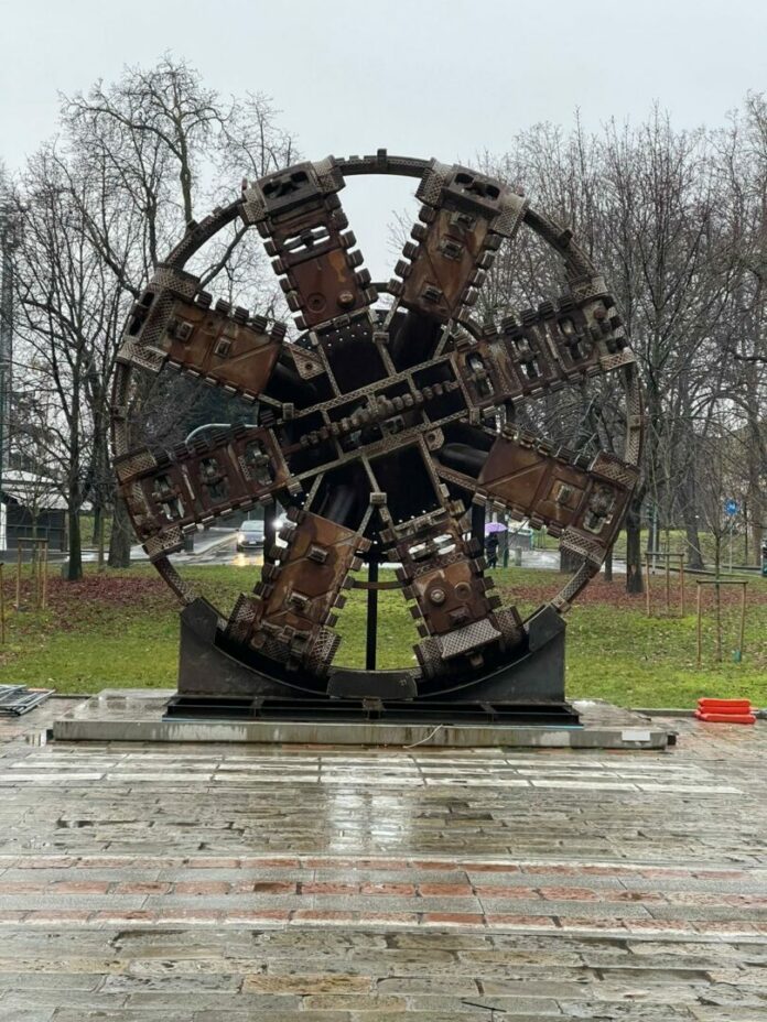MILANO (ITALPRESS) – E’ arrivata in Triennale la testa della TBM Stefania, una delle sei talpe che hanno scavato la Metro 4 di Milano, per la mostra “Costruire il Futuro” promossa da Webuild con la Triennale, che sarà inaugurata il prossimo 2 marzo.