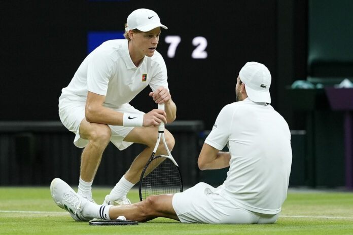 LONDRA (INGHILTERRA) (ITALPRESS) – Jannik Sinner accede ai quarti di finale di Wimbledon dopo il ritiro di Grigor Dimitrov all’inizio del terzo set. Match non esaltante dell’altoatesino che, anche a causa di un problema al gomito accusato dopo un game, si trovava sotto di due set sul punteggio di 6-3 7-5. Grande sfortuna per Dimitrov, vittima di un problema al pettorale destro. “Dimitrov è un giocatore incredibile e lo ha dimostrato oggi – le parole dell’azzurro -. È un amico ed è brutto vederlo così, si sarebbe meritato di giocare il prossimo turno. Non mi sento il vero vincitore, non è stato il finale che ci saremmo augurati”, le parole, nell’intervista in campo, di Sinner, alla quarta partecipazione consecutiva ai quarti di finale ai Championships. L’altoatesino si giocherà un posto in semifinale con Ben Shelton, che ha fatto fuori in quattro set Lorenzo Sonego. Sarà il settimo confronto tra Sinner e Shelton. Il bilancio recita cinque successi azzurri e uno americano, risalente al Masters 1000 di Shanghai 2023.