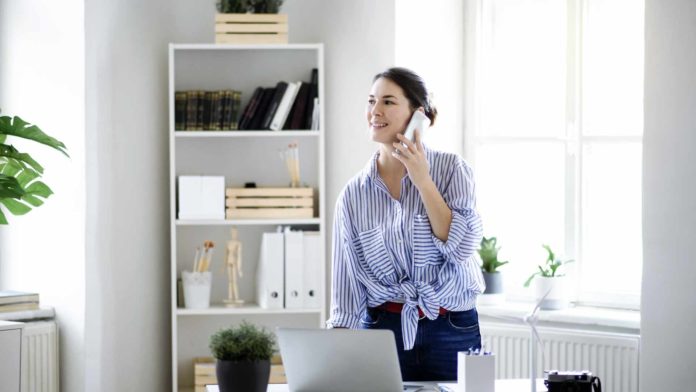 Young woman indoors working from home in lockdown.